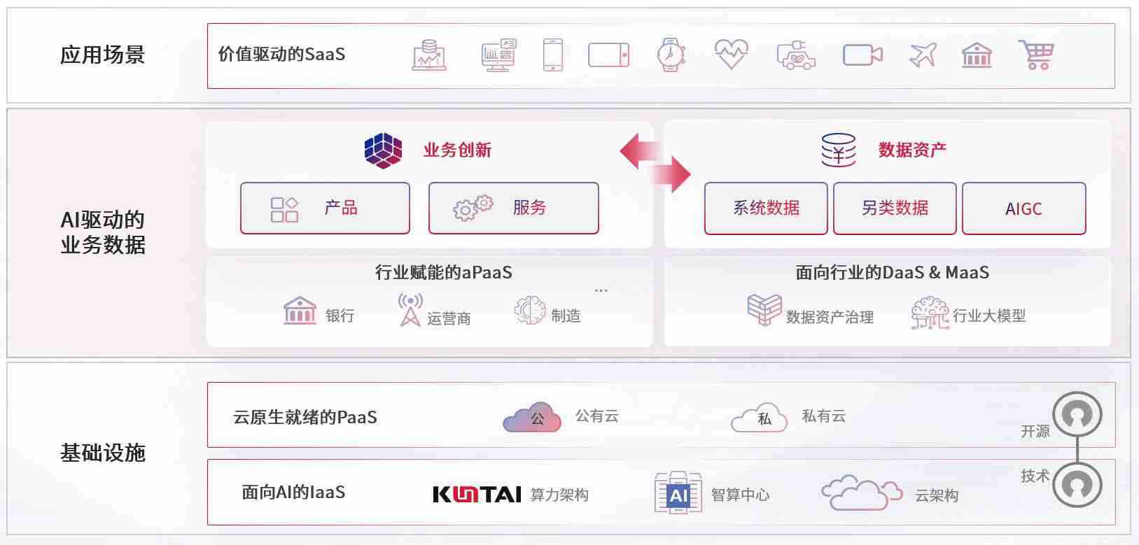 数字时代,,,围绕企业数字化转型的关键要素,,,人生就是搏数码开创性的提出数云融合战略和技术体系框架,,着力在云原生、、数字原生、、AI原生和信创产业上架构产品和服务能力,,,,为处在不同数字化转型阶段的快消零售、、、、汽车、、、金融、、、、医疗、、、、政企、、、教育、、运营商等行业客户提供泛在的敏捷IT能力和融合的数据驱动能力,,构建跨界融合创新的数字业务场景和新业务模式,,助力企业级客户建立面向未来的核心能力和竞争优势,,,全面推动社会的数字化、、、智能化转型升级。。。。